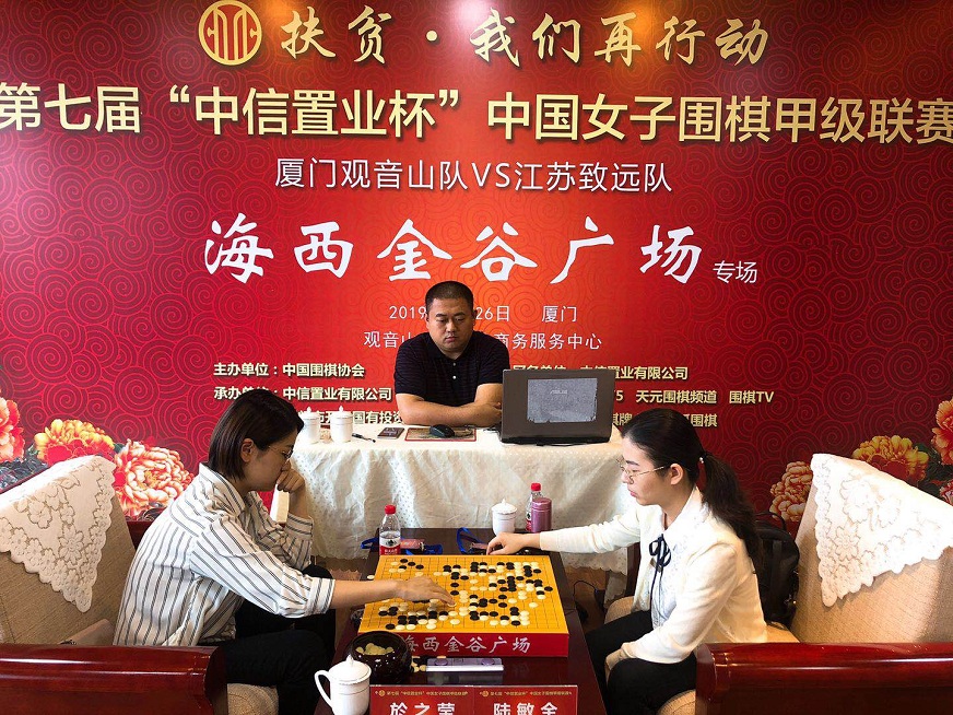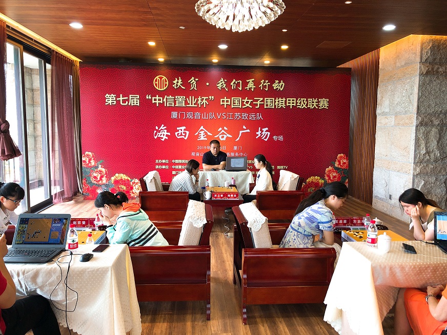 都說(shuō)魚(yú)離不開(kāi)水,魚(yú)兒上了陸,結(jié)果一望便知。這不,上周末,美麗鷺島就又上演了一場(chǎng)魚(yú)兒登陸的好戲。5月26日,第7屆中信置業(yè)杯中國(guó)女子圍棋甲級(jí)聯(lián)賽第3輪(廈門觀音山隊(duì)主場(chǎng) VS 江蘇致遠(yuǎn)隊(duì))“海西金谷廣場(chǎng)”專場(chǎng)在位于廈門觀音山海岸的觀音山總部企業(yè)商務(wù)服務(wù)中心戰(zhàn)罷。廈門觀音山隊(duì)家門口以2-1鎖定勝局,成功挑落女子圍甲六冠王——衛(wèi)冕冠軍江蘇隊(duì)。