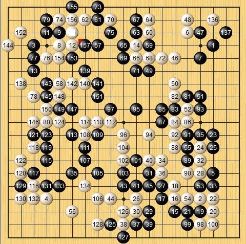 陸敏全五段執(zhí)黑157手中盤(pán)勝於之瑩六段