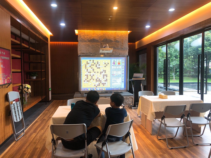有模有樣的跟爸爸討論棋局的小棋迷