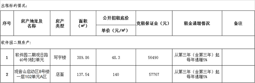 備注:意向承租人對上述情況應(yīng)有充分了解。詳細招租規(guī)則、房屋租賃合同樣本、承諾函、報價單等招租文件于報名參加時領(lǐng)取。