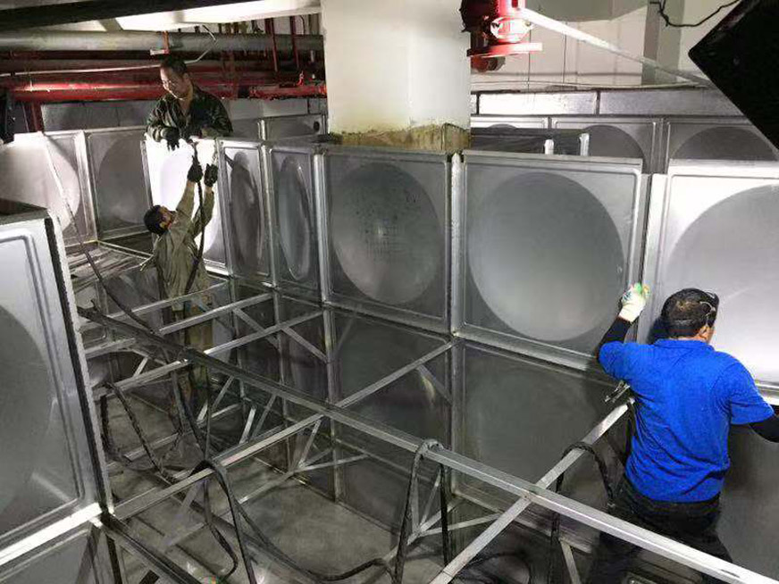 2018年12月初,東坪花園小區(qū)二次供水水箱的不銹鋼箱體存在漏水現(xiàn)象,同時(shí)與箱體連接的出水管道也腐蝕銹穿。若不盡快進(jìn)行維修,可能會(huì)出現(xiàn)爆管甚至整個(gè)二次供水儲(chǔ)水箱爆箱的事故,后果將不堪設(shè)想。經(jīng)過幾家有專業(yè)資質(zhì)的單位進(jìn)行現(xiàn)場(chǎng)查看,均表示無法維修,只能進(jìn)行更換。為了確保小區(qū)用水安全,公司決定啟動(dòng)緊急維修程序,進(jìn)行水箱及管道的更新改造。