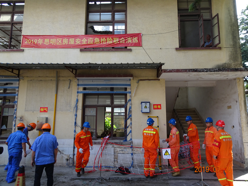 7月25日思明區(qū)建設(shè)管理局開展2019年思明區(qū)房屋安全應(yīng)急搶險(xiǎn)聯(lián)合演練,模擬危舊房由于年久失修,造成鋼筋混凝土樓板及陽(yáng)臺(tái)板的險(xiǎn)情,危及房屋內(nèi)人員和公共安全。演練通過開展人員疏散與轉(zhuǎn)移,停水、停電與停氣,鋼筋混凝土樓板臨時(shí)加固和頂撐支護(hù),鋼筋混凝土陽(yáng)臺(tái)板頂撐支護(hù)等應(yīng)急搶險(xiǎn)內(nèi)容,旨在提高應(yīng)對(duì)房屋安全突發(fā)性事件的應(yīng)急處置能力,加強(qiáng)思明區(qū)房屋應(yīng)急工作相關(guān)部門、隊(duì)伍人員之間的應(yīng)急響應(yīng)和協(xié)同能力,保證房屋安全應(yīng)急搶險(xiǎn)工作高效有序進(jìn)行。