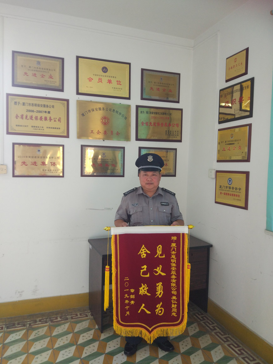 吳仁財(cái)同志是一個(gè)行事低調(diào)、不愛張揚(yáng)的人,他不希望別人知道他救人的事,若不是事主家屬到公司致謝,大家都不知道他不會游泳卻奮勇救人的善舉。“沒想那么多,當(dāng)時(shí)看到危急情況,只是一種本能而已。”這是吳仁財(cái)同志在交談中說的最多的一句話。沒有什么豪言壯語,但說的字字震撼人心。“見義勇為,舍己救人”錦旗上8個(gè)金黃的大字分外耀眼,小小的錦旗不僅包含著市民對保安員最真誠的謝意,也是對保安員吳仁財(cái)同志高尚品德的高度贊揚(yáng),更讓我們從一個(gè)普通的保安員身上看到了人性真、善、美的本能,他用實(shí)際行動(dòng)展現(xiàn)了特區(qū)保安人的高尚品質(zhì)和良好的精神風(fēng)貌,向社會傳遞了源源不斷的暖心正能量。