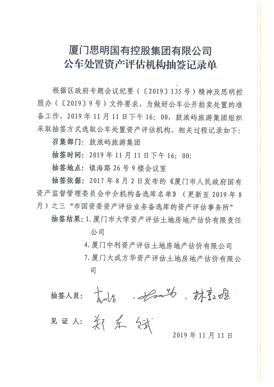 附件:1.《思明控股公車(chē)處置(第四批)資產(chǎn)評(píng)估機(jī)構(gòu)抽簽記錄單》;