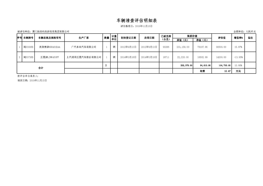 4.《鼓浪嶼旅游集團(tuán)車(chē)輛清查評(píng)估明細(xì)表》。