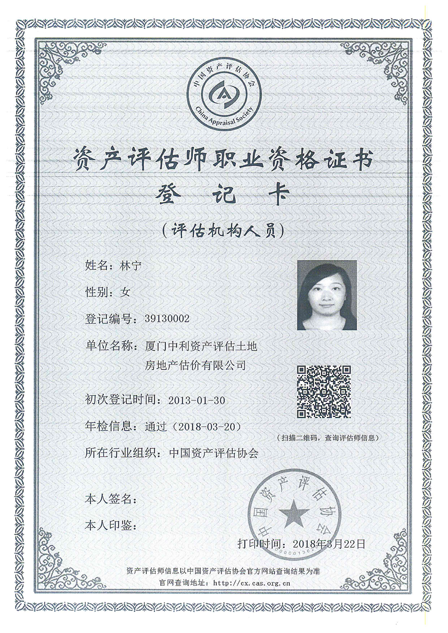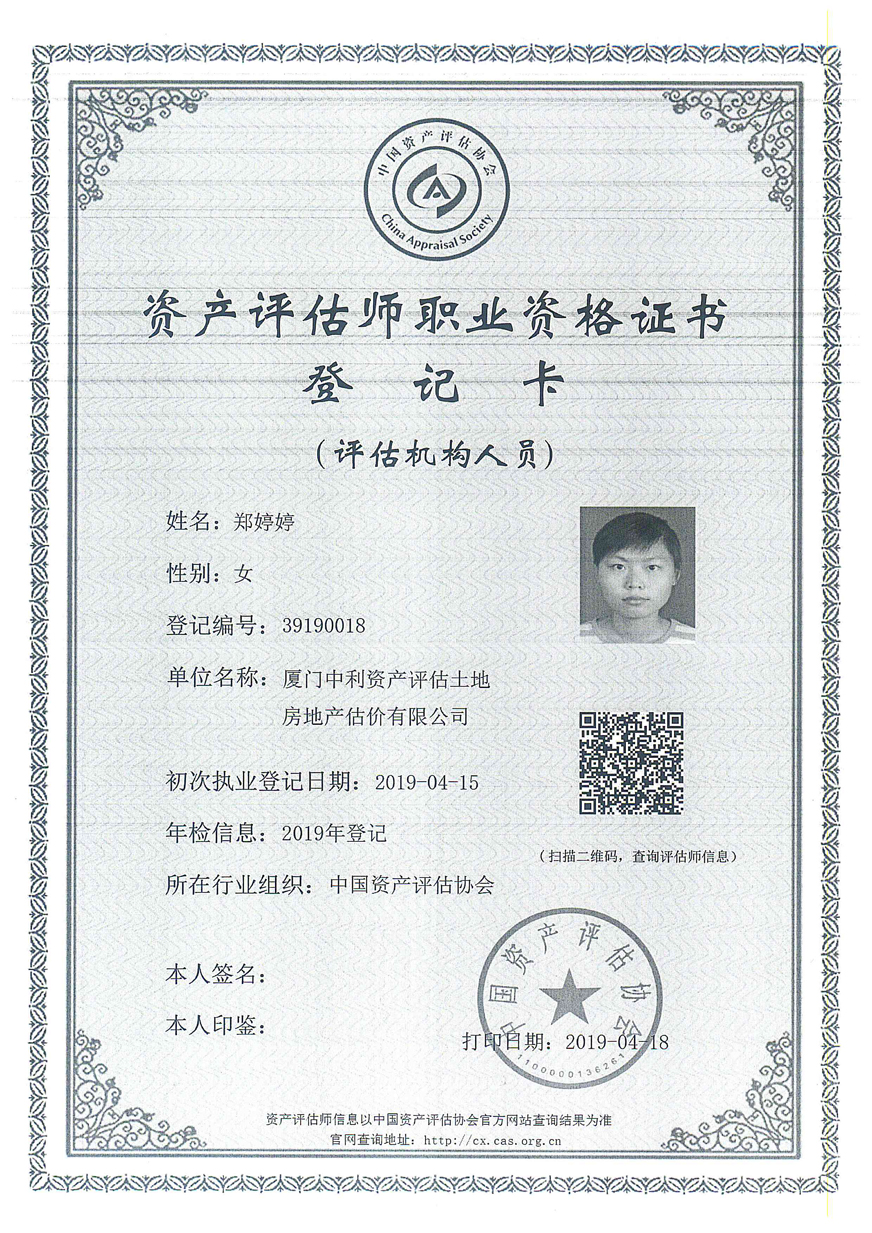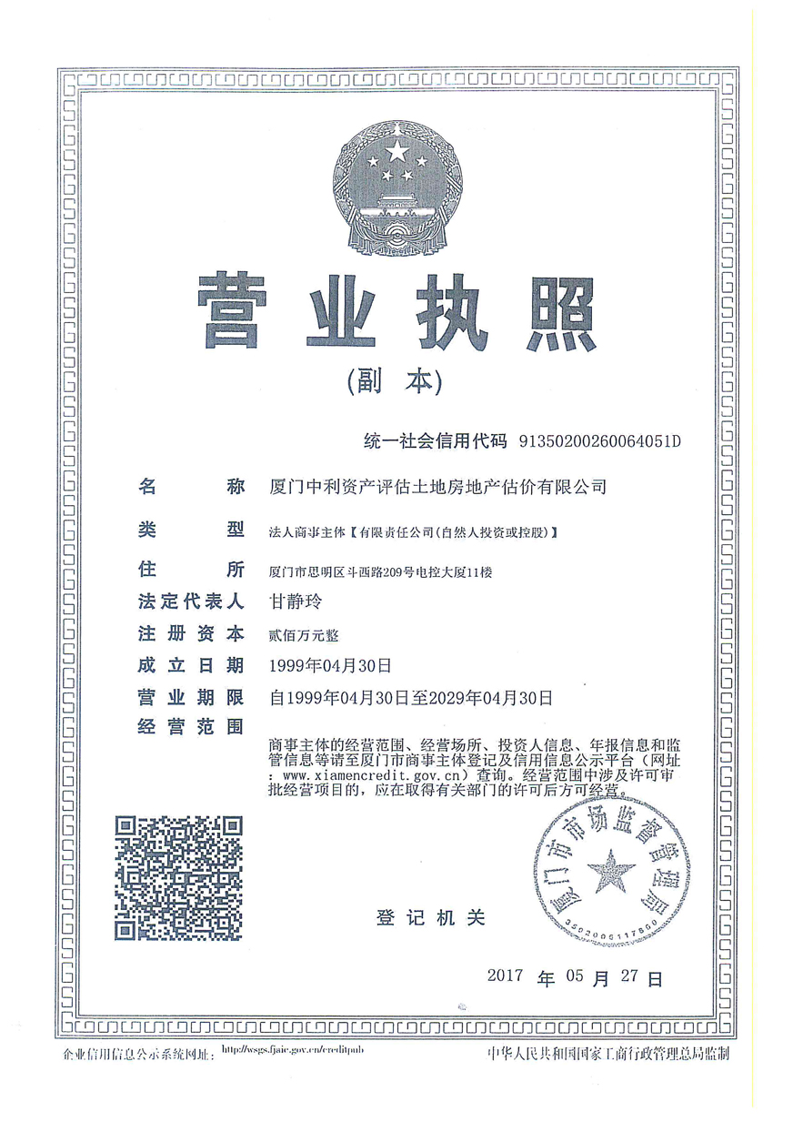 3. 廈門(mén)中利資產(chǎn)評(píng)估土地房地產(chǎn)估價(jià)有限公司營(yíng)業(yè)執(zhí)照、評(píng)估資格證書(shū)復(fù)印件及注冊(cè)評(píng)估師林寧、鄭婷婷資質(zhì)證書(shū)復(fù)印件;