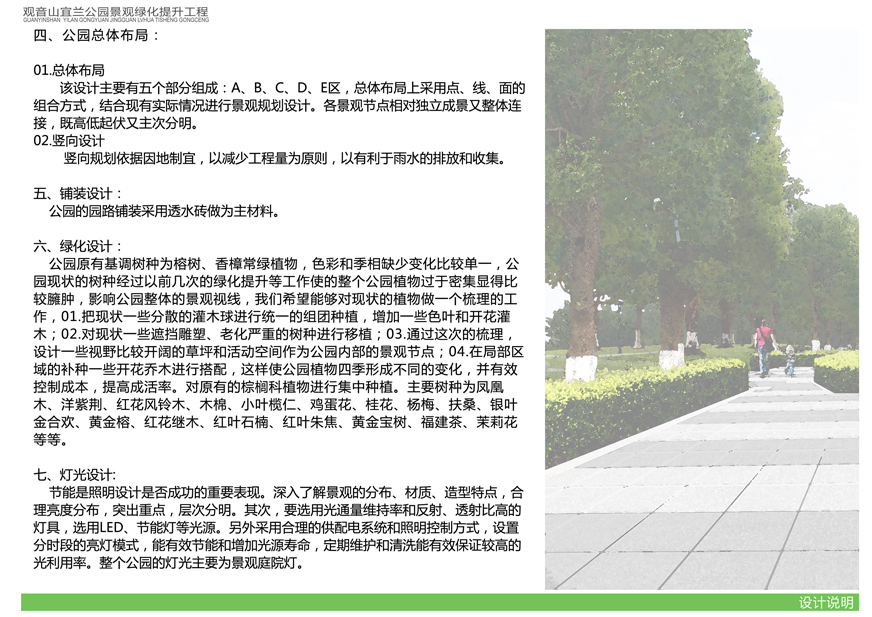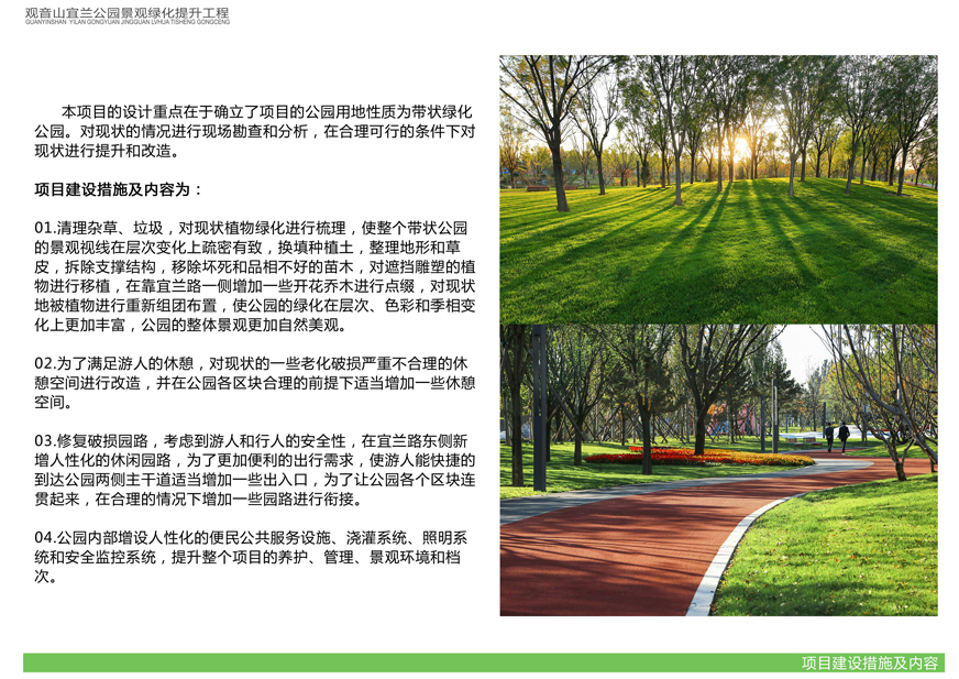 具體內(nèi)容詳見(jiàn)附件:《觀音山宜蘭公園景觀綠化提升工程設(shè)計(jì)方案》