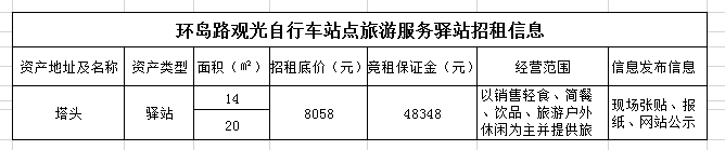 備注:意向承租人對(duì)上述情況應(yīng)有充分了解。詳細(xì)招租規(guī)則、合同、承諾函、報(bào)價(jià)單等招租文件于報(bào)名參加時(shí)領(lǐng)取。
