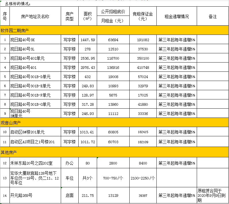 開元國投擬出租房產(chǎn)招租情況公告