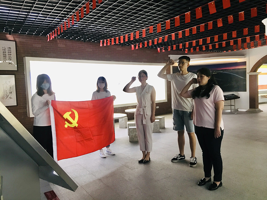 結(jié)束參觀后,全體黨員面對黨旗舉行莊嚴(yán)的重溫入黨誓詞儀式。黨員在海堤紀(jì)念館前,面對鮮艷的黨旗,重溫入黨誓詞,洪亮的宣誓讓黨員同志們重憶初心,加固信念堡壘。