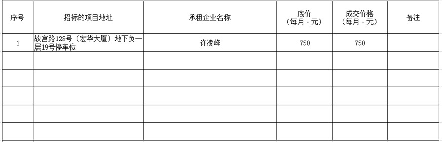 根據(jù)思明區(qū)國(guó)有企業(yè)資產(chǎn)出租管理的相關(guān)制度,我司2020年7月17日上午9:00起于觀音山營(yíng)運(yùn)中心2號(hào)樓2層2號(hào)會(huì)議室進(jìn)行公開招租現(xiàn)場(chǎng)開標(biāo),現(xiàn)通過思明控股網(wǎng)站對(duì)外發(fā)布成交公告,內(nèi)容如下:
