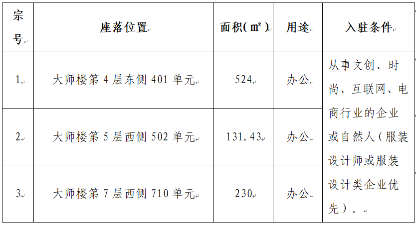 根據(jù)國有企業(yè)資產(chǎn)出租管理相關(guān)制度,我司決定對位于龍昌路12號嘉蓮商務(wù)中心大師樓下列3宗房產(chǎn)對符合入駐條件的意向承租人進行公開競價招租,具體信息如下: