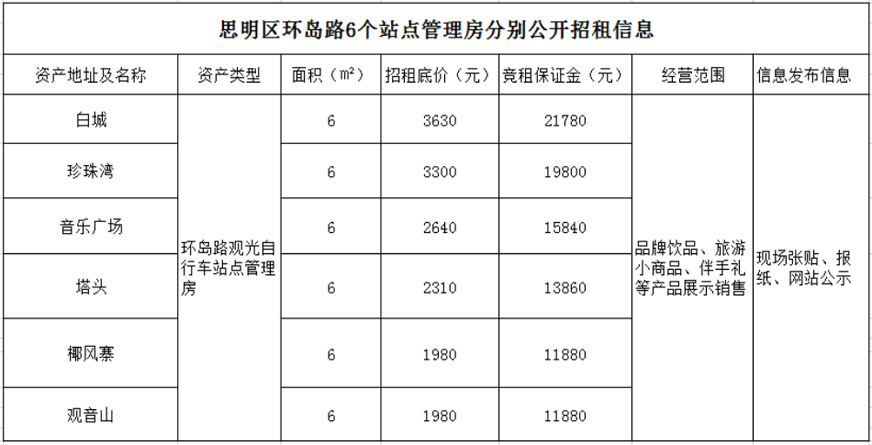 思明區(qū)環(huán)島路6個站點管理房分別公開招租公告
