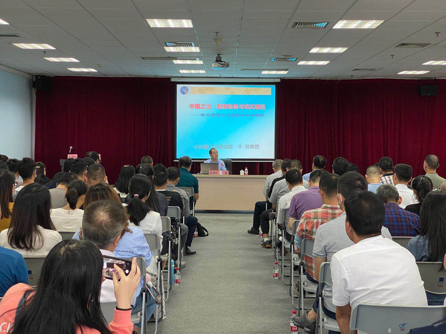 為進一步學習貫徹落實黨的十九屆四中全會精神,10月30日下午,控股集團黨委邀請廈門市委黨校黨建教研部副主任、教授牛君作專題宣講。會議由控股集團黨委副書記潘用樹主持。控股集團領導班子、所屬二級子公司中層副職(含所屬三級子公司副職)以上人員、全體在廈黨員以及觀音山園區(qū)黨建聯(lián)盟成員單位代表等近200人在會場聆聽宣講。
