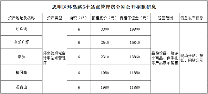 思明區(qū)環(huán)島路5個(gè)站點(diǎn)管理房分別公開(kāi)招租公告