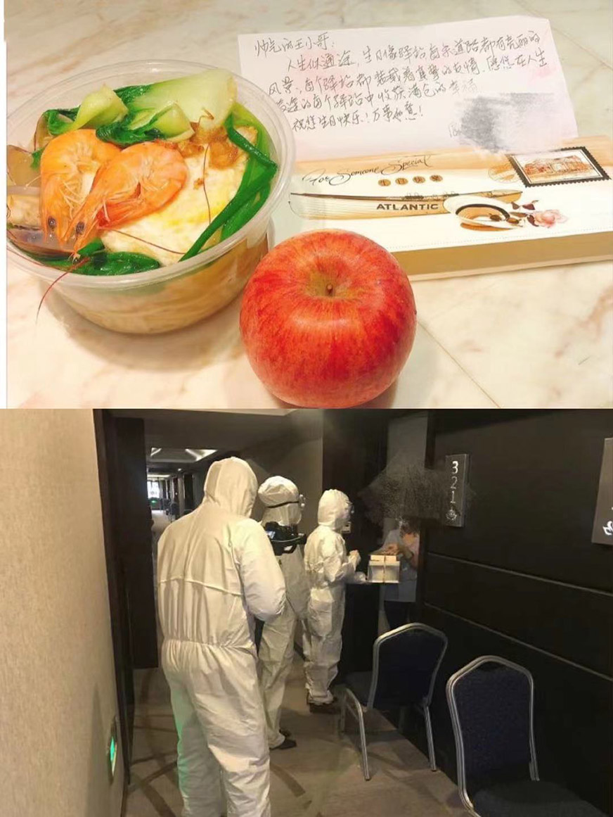 今年春節(jié)期間,因疫情住在隔離酒店的隔離人員不能和家人、朋友團聚,但酒店專班也為每一個在住隔離人員都準備了年貨、應(yīng)景的年夜飯、在酒店門口等貼上春聯(lián)、掛上紅燈籠等,讓隔離人員也都能感受到年味兒,過上一個別樣的新年。