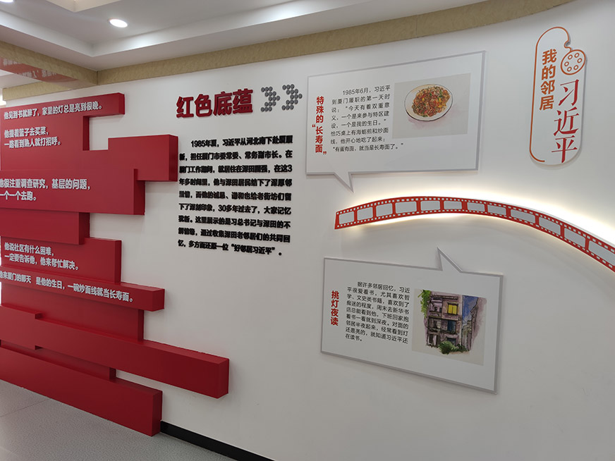 在政治生活館內(nèi),從特別的“長壽面”、簡樸的婚禮、一張手寫明信片等一件件溫馨事跡,從觀看《我的鄰居習(xí)近平》錄像片到聽小朋友生動講述習(xí)爺爺?shù)墓适拢瑥?ldquo;我可以叫你小習(xí)嗎”“伊是阮的好厝邊”及“深田讀冊歌”等小片段中,讓我們仿佛看到了當(dāng)年習(xí)近平總書記入鄉(xiāng)隨俗、與深田居民一起嘮嘮嗑、拉家常的生活場景,直觀感受了習(xí)近平總書記平易近人、誠懇謙和、勤奮好學(xué)的優(yōu)秀品格以及一心為民、清廉務(wù)實(shí)的工作作風(fēng)。