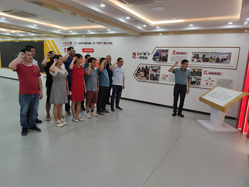 隨著參觀接近尾聲時,在這重要的時刻,重要的地點(diǎn),黨支部書記陳睿武帶領(lǐng)大家,面向黨旗,莊嚴(yán)地舉起右手,握拳宣誓,重溫入黨誓詞:“我志愿加入中國共產(chǎn)黨,擁護(hù)黨的綱領(lǐng),遵守黨的章程,履行黨員義務(wù),執(zhí)行黨的決定,嚴(yán)守黨的紀(jì)律,保守黨的秘密,對黨忠誠,積極工作……”短短的80個字,句句千鈞、擲地有聲,讓全體黨員再次接受洗禮,銘記莊嚴(yán)的承諾,牢記共產(chǎn)黨員的初心和使命,堅(jiān)定對黨的事業(yè)奮斗終生的決心。參觀結(jié)束后,大家也紛紛表示將會從深田社區(qū)的紅色印記中汲取力量,牢記初心使命,以更飽滿的熱情積極投身到工作中去,切實(shí)發(fā)揮黨員的先鋒模范作用,為企業(yè)的發(fā)展添磚加瓦。