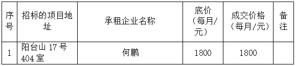 陽(yáng)臺(tái)山17號(hào)404室房產(chǎn)招租成交公告