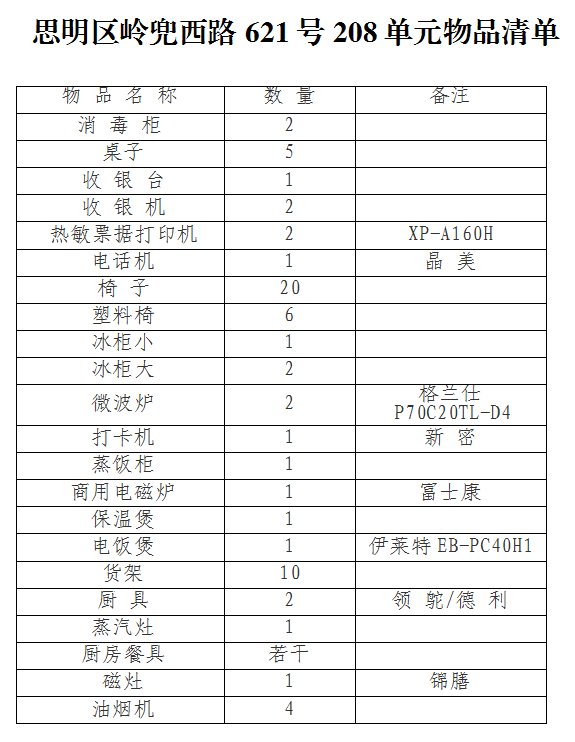 2、物品名稱及數(shù)量:冰柜、消毒柜等一批廢舊物品(詳見附表---208單元物品清單)。