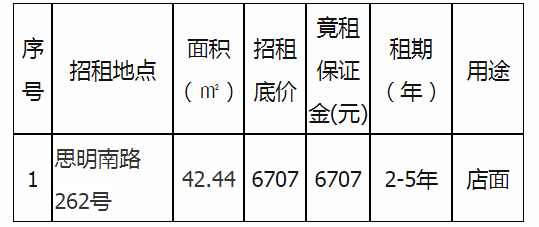 六、提交報(bào)價(jià)及公布報(bào)價(jià)時(shí)間(競租):2021年 12 月 27 日上午10:00時(shí)至11:00時(shí)止(各競租人當(dāng)天具體提交報(bào)價(jià)材料的開始及截止時(shí)間以招租人根據(jù)現(xiàn)場招租場地先后順序安排確定)
