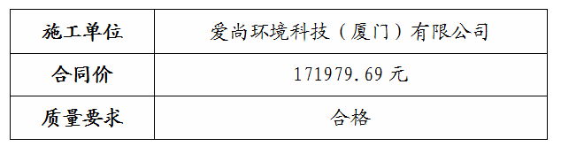 根據(jù)招投標(biāo)管理辦法、思明控股辦[2021]14號文《采購招標(biāo)管理辦法》的相關(guān)規(guī)定,我司負(fù)責(zé)的思明區(qū)青少年綜合實踐基地A1地塊充電樁施工工程項目直接委托愛尚環(huán)境科技(廈門)有限公司施工,現(xiàn)通過思明控股網(wǎng)站于2022年01月19日至2022年01月21日進(jìn)行成交結(jié)果公告,內(nèi)容如下: