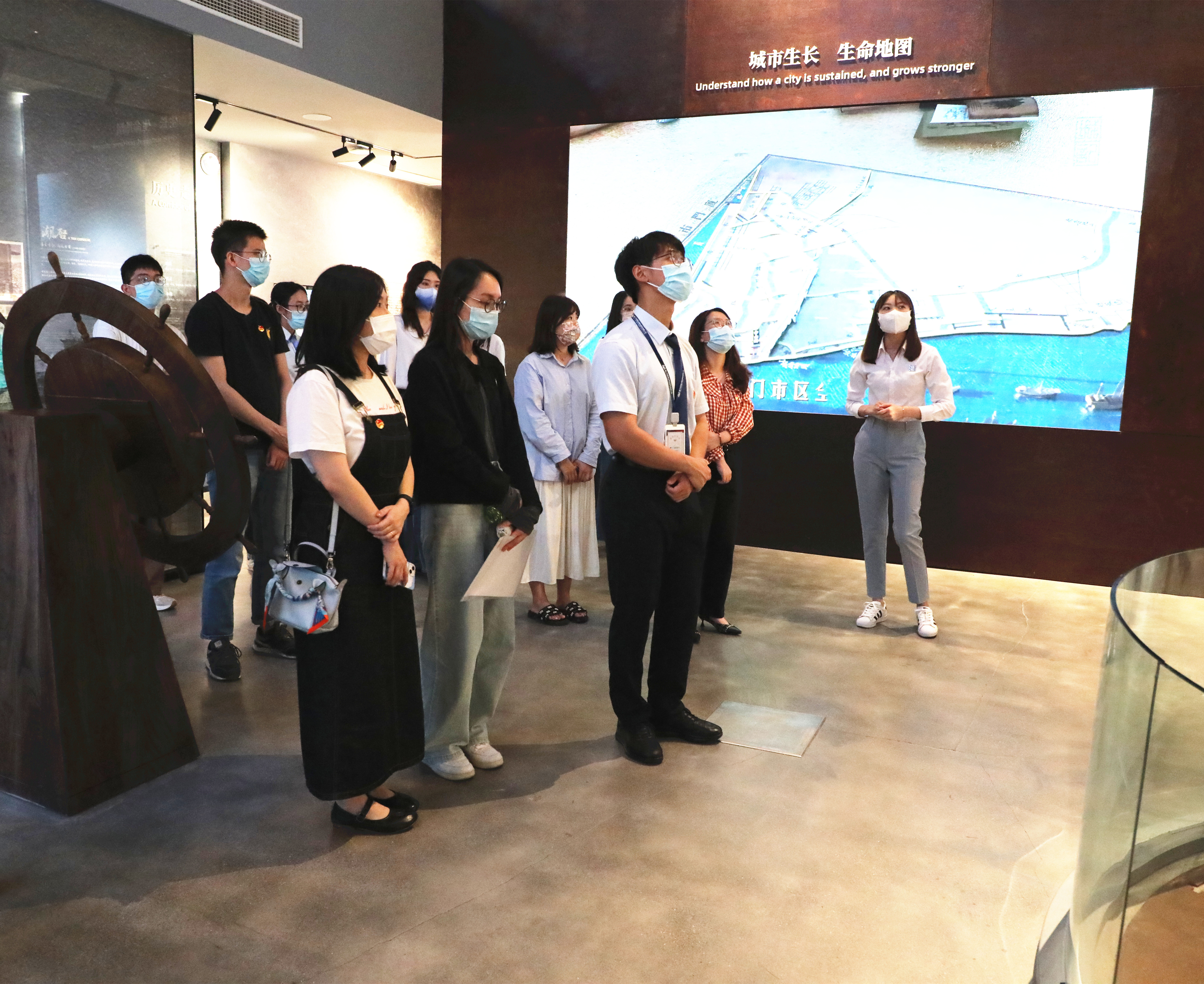 團(tuán)員們首先參觀了城記·中山路展館。這是思明城區(qū)文化更新一個(gè)極具代表性、藝術(shù)性的項(xiàng)目,自今年4月正式開(kāi)放以來(lái),受到市民游客的廣泛關(guān)注。建筑是城市的編年史,中山路更是廈門經(jīng)濟(jì)騰飛與發(fā)展的縮影。通過(guò)展館內(nèi)“人文之光”“歷史走廊”“記憶場(chǎng)景”“未來(lái)暢想”四個(gè)主題講述,大家在鮮活的場(chǎng)景中,聆聽(tīng)、體驗(yàn)中山路的“前世今生”;也通過(guò)這場(chǎng)穿越之旅,大家深切感受到廈門這座城市的變遷與發(fā)展。歲月不居,時(shí)節(jié)如流,改革開(kāi)放四十年光陰一倏而過(guò),廣大青年作為城市歷史的見(jiàn)證者和參與者,建設(shè)廈門高素質(zhì)高顏值現(xiàn)代化國(guó)際化城市重任在肩、時(shí)不我待。