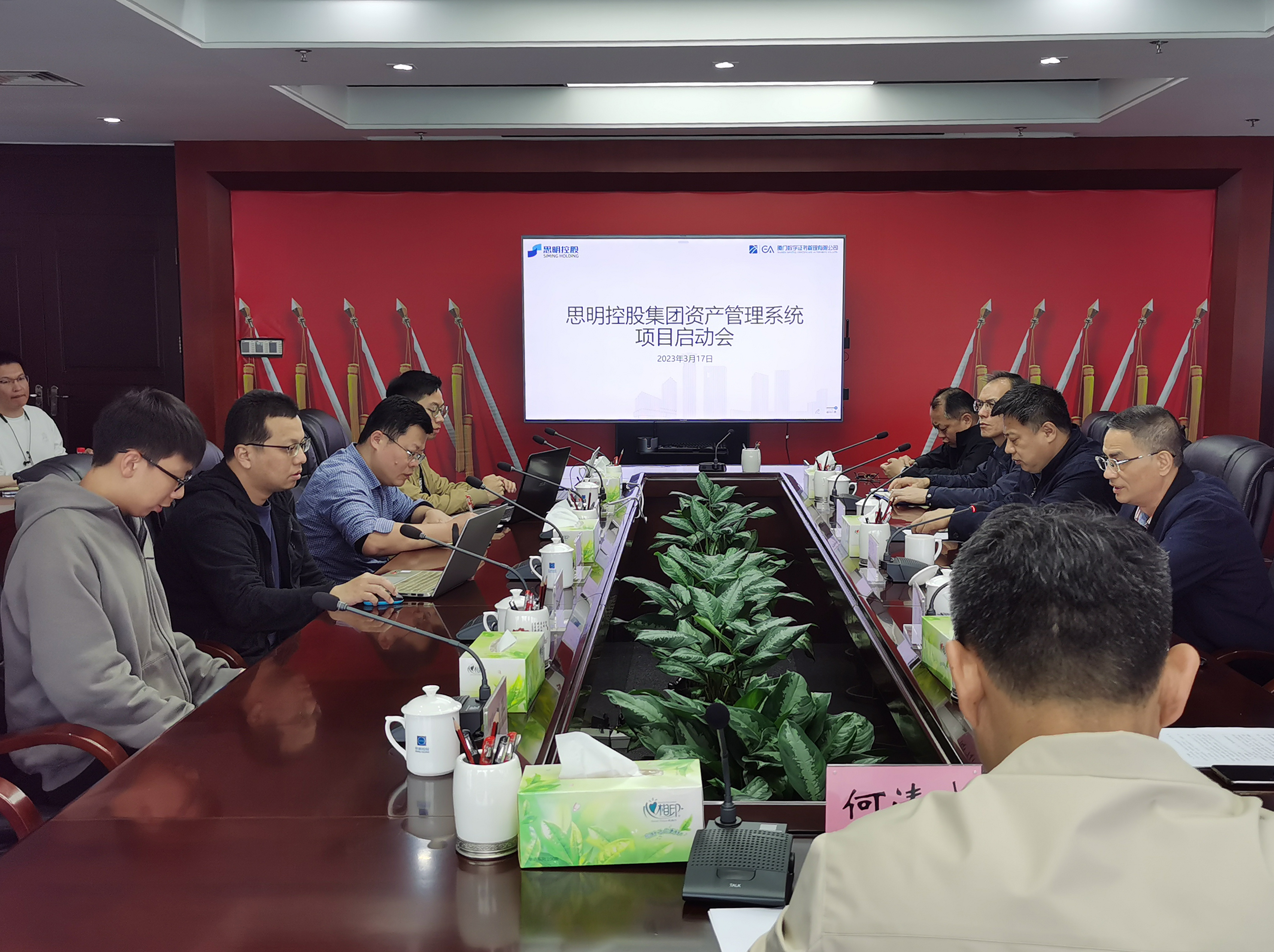 隨后,廈門數(shù)字證書總經(jīng)理林燕龍就項(xiàng)目正式啟動(dòng)致詞,對(duì)控股集團(tuán)的信任和支持表示感謝,并表態(tài)將充分借鑒廈門各大國(guó)企項(xiàng)目實(shí)施的成功經(jīng)驗(yàn),帶領(lǐng)項(xiàng)目小組全力打造出優(yōu)質(zhì)的、適合思明控股集團(tuán)各類資產(chǎn)發(fā)展需求的資產(chǎn)管理平臺(tái)。