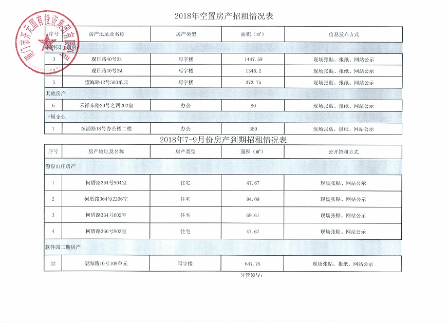 廈門市開元國有投資集團(tuán)有限公司房屋公開招租信息