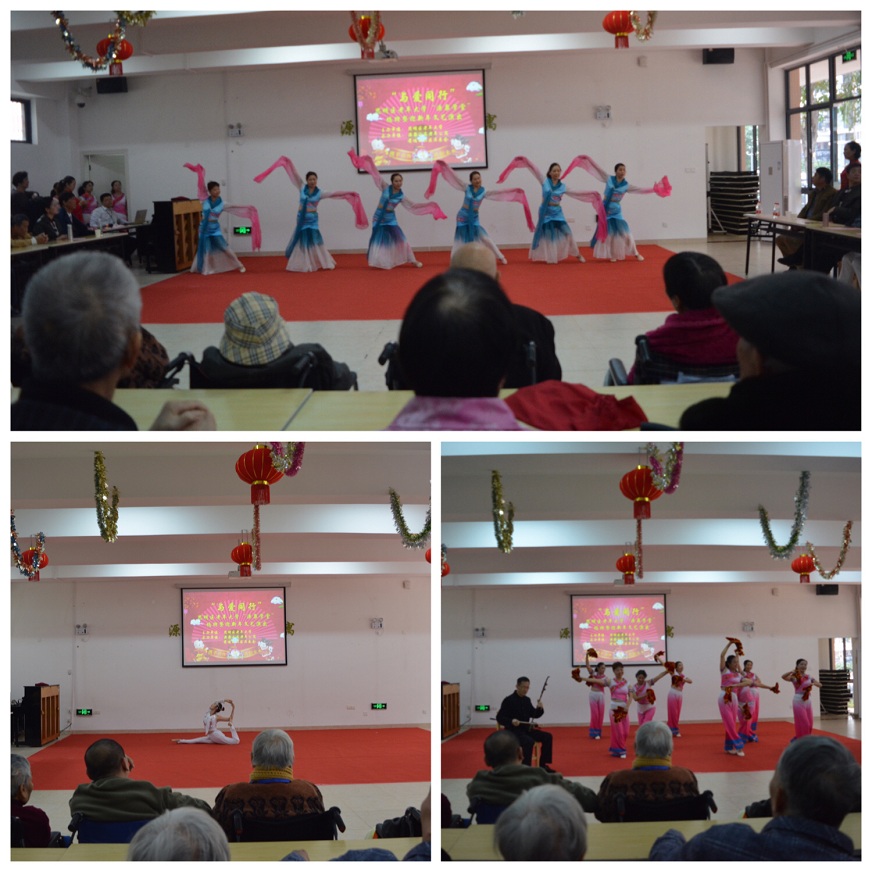 揭牌儀式結(jié)束后,思明區(qū)老年大學(xué)還為老年公寓長者們帶來了一臺精彩的“與愛同行”的慰問文藝演出,為揭牌儀式更增添了一縷喜慶光彩。先由思明區(qū)老年大學(xué)樂隊《器樂連奏》打頭陣,薩克斯、二胡共同演奏的旋律音色非常有特點,歡快而又動情的演奏感染著現(xiàn)場觀眾;之后由思明區(qū)老年大學(xué)合唱隊男女聲二重唱《我愛你中華》、《小橋》,氣勢磅礴的氣勢,震撼全場;六十余歲舞者表演的《舞韻瑜伽》,柔軟的身體優(yōu)雅地呈現(xiàn)各式高難度體形,使得在場的長者們個個驚嘆不已,掌聲連連,一度將現(xiàn)場氣氛推至高潮,全場觀眾的熱情度在愉悅的氛圍中不斷升溫。