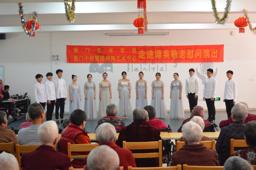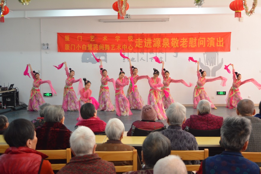 陽春三月,萬物復(fù)蘇。在這個(gè)美好的季節(jié)里,源泉山莊老年公寓飛來一只可愛的“小白鷺”——最受群眾喜愛的廈門小白鷺民間舞團(tuán)。這已是廈門小白鷺民間舞藝術(shù)中心和廈門藝術(shù)學(xué)校第四個(gè)年頭來到源泉山莊老年公寓,為住在老年公寓里的長(zhǎng)者們舉辦慰問演出,在今年春天又一次給長(zhǎng)者們帶來了一場(chǎng)美好的感受和豐富的文化盛宴。